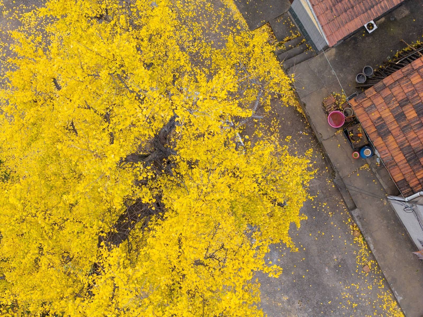 俯瞰千年古银杏树。图/九派新闻 杜文添