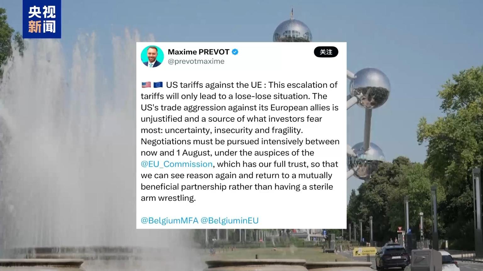 比利时副首相兼外交大臣普雷沃在社交媒体上发文称,关税升级只会导致“双输”局面。美国对其欧洲盟友的贸易攻击是不合理的。