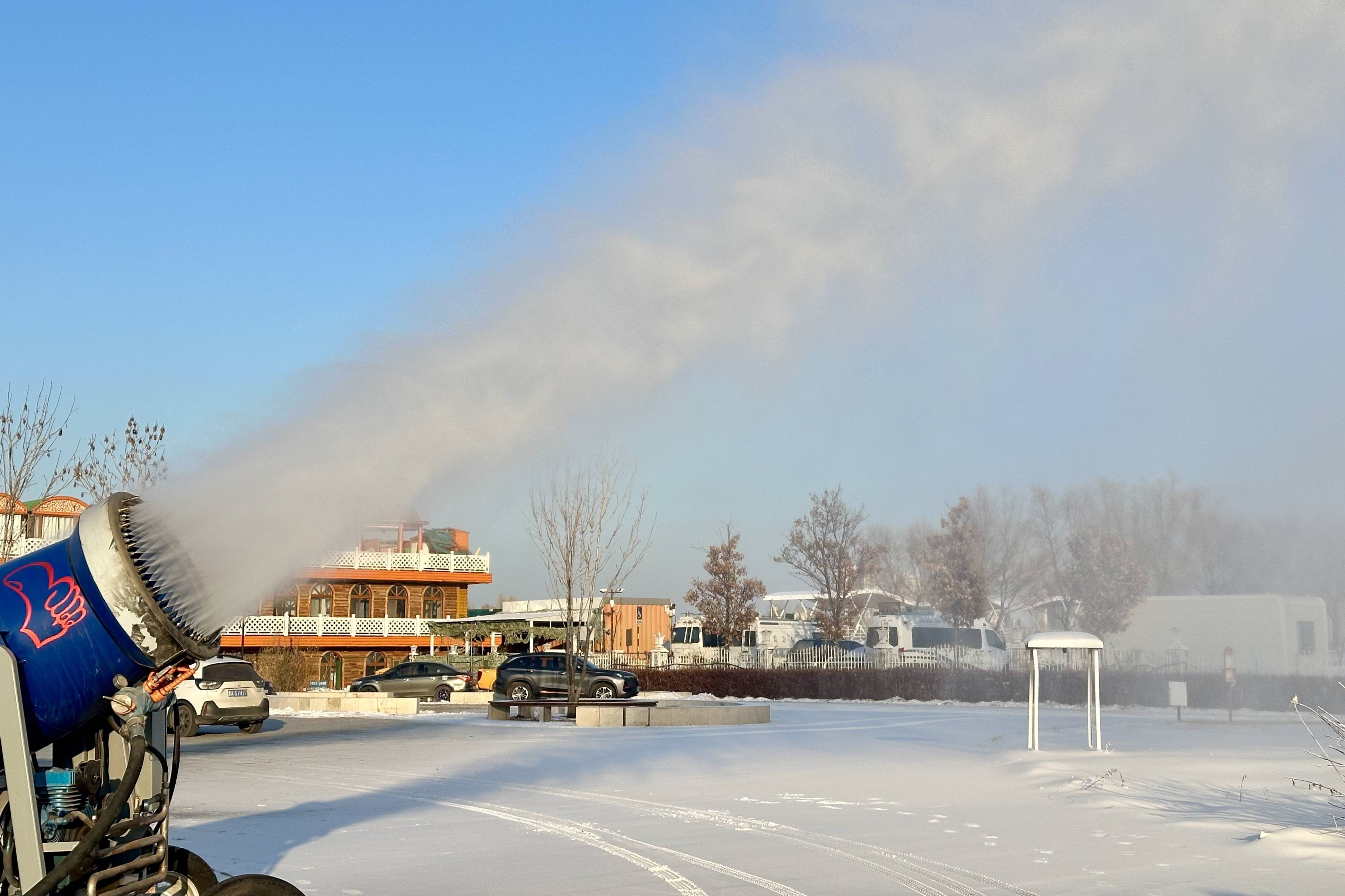 今冬网红大雪人造雪现场。新华社发为了让大雪人的笑容更加灿烂、肤色更加透亮,今年的施工工艺同样升级。据现场施工人员介绍,人工造雪使用松花江水,为了让水质更纯净,新增一处滤水池,可以让雪质更加洁白,如同给大雪人增加一道“美颜滤镜”,也可延长堆放时间。